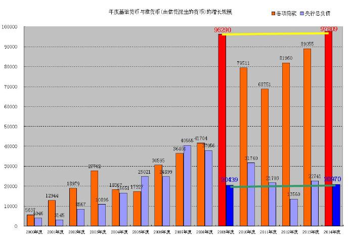 我们2014年的信贷增长规模,已经超过了2009年的信贷增长。再看基础货币,2014年的基础货币增长,也超过了2009年的规模。