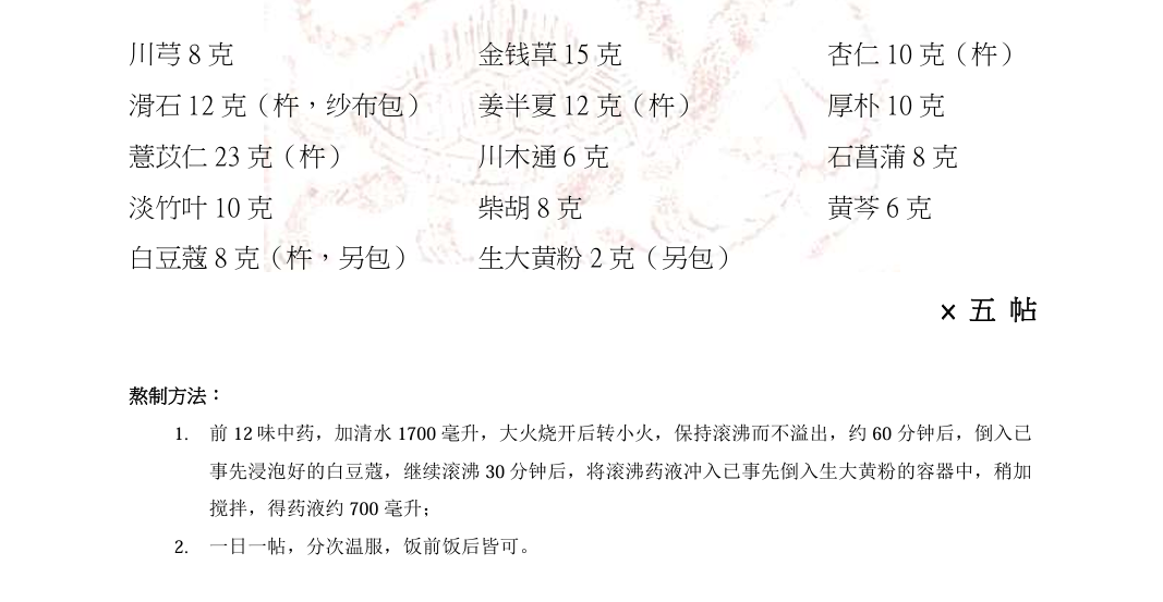 观其人:年四十出头,身形微胖,面色微黄,精神困倦,舌面苔厚腻且黄,舌下络脉瘀滞清晰可见。问其病:长期失眠,一年前曾有一氧化碳中毒,在中毒期间用高压氧治疗,而后失眠症状加重。平日脾气急躁,肋部常有胀痛,西医检查有肝部血管瘤。大便常不尽,伴有粘稠和恶臭。月经几无。流汗较多,有盗汗倾向,伴有体味重。喉中有痰且嘴中常粘稠。过去几月,曾接受当地中医治疗,多服生熟地、麦冬、天冬、党参等滋补之物(详见下图),辅以吞服补中益气丸,非但没有达到预期效果,反倒更加烦躁,常彻夜难眠,精神接近奔溃。溯其源:多汗、人急躁、体味重、口腔粘腻、肋部胀痛、肝部有血管瘤... 这些症状都一致指向一个结论——身中大量糟粕,导致痰湿和肝火扰心,进而产生睡眠障碍。与此同时,便不尽,月经几无,说明患者身体对外排出糟粕的渠道却并不通畅,而曾经的高压氧治疗,可理解为人为地加大了体内阳气向外伸展的无形趋势,导致精神较常人更难安宁。当务之急,本该尽快搭建渠道排出有形糟粕和无形趋势,而此前治疗却重在滋补,此无异于火上浇油,使病不轻反重!此为少阳病,当以小柴胡疏解肝郁、外加三仁汤涤尽糟粕解之,遂予下方五帖:服药当晚,患者对停止服用滋补类药物的焦虑感尚未消除,但在平复心情后,当晚睡眠接近正常。往后几日,仍有一日夜寐欠佳,患者也反馈在喝蛤蜊汤的情况下,睡眠似乎更容易得到改善。究其原因,是蛤蜊壳质地重镇,可很好地缓解体内阳气向外伸展的无形趋势,同时,蛤蜊肉滋阴却不滋生糟粕,可有效顾及到一氧化碳中毒所导致的身体损伤。鉴于此,在五帖中药之后,在原方中去石菖蒲而加西洋参六克,再追加三帖。往后几日,随着睡眠质量不断改善,患者的精神状态和体力也都随之大大改善。首先,“滋补”已然成为当下中医发展的一块沉疴。在物资匮乏、营养稀缺的三五十年前,尚可借此调养元气;但在今日营养过剩、代谢失衡的普遍现实中,盲目进补不仅无益,反而易使人体堆积糟粕,久之,百病丛生,难以收拾。其次,医圣张仲景在《伤寒论》中反复阐发的“汗、吐、下”三法,无论古今,皆为破邪治病、转危为安之大道。唯有维持体内代谢通畅,使出入有序,人体方能自我调节,将病邪排除于外。再次,关于在此前文章韧中所提用于治疗失眠的“伏神丹”,近来有不少朋友询问为何迟迟未见踪影。在此一并说明:在过去一年里,归正团队一直在对药方配比进行反复论证,目前正通过正规渠道进行各项成分指标的实验与专利申请,并同步就药材遴选与炮制工艺做最后定稿,预计将于年内正式推出,届时将第一时间于本公众号发布,敬请关注。———— THE END ————