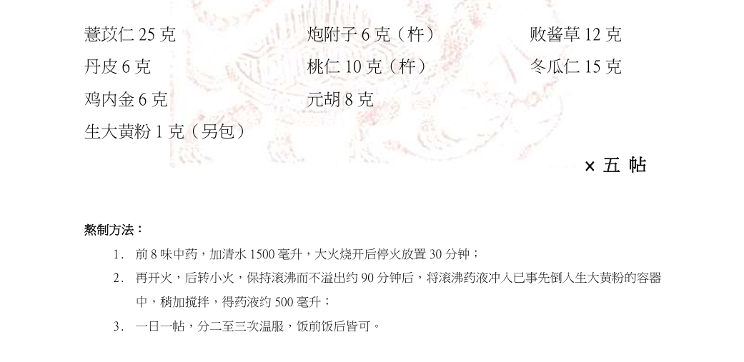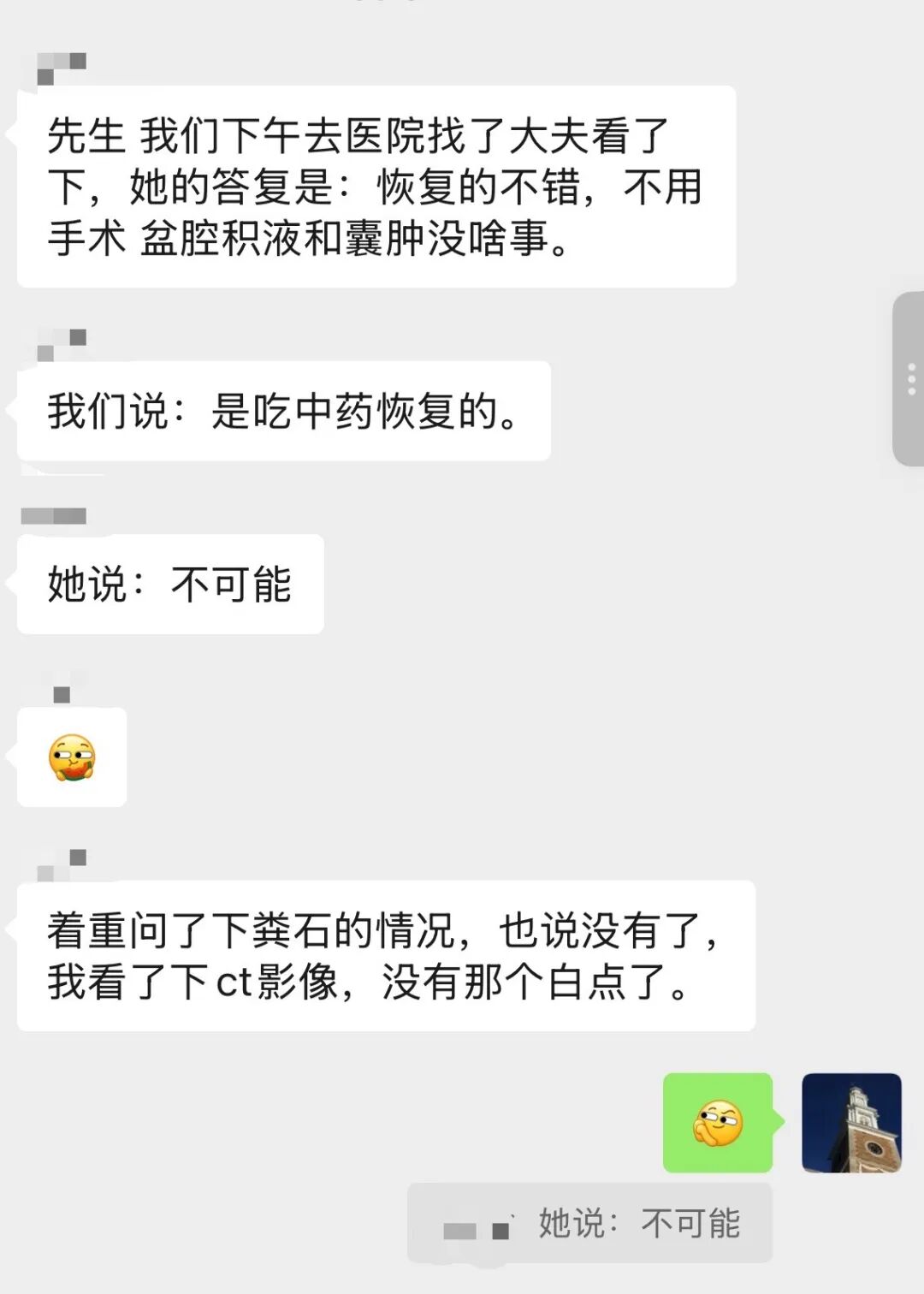 观其人:年十三,面色微黄,精神倦怠,舌面苔厚腻且黄,尤以舌根为甚。问其病:右下腹隐隐作痛一年有余,平日喜食零食,近一二日突发急剧疼痛。疼痛时,人烦躁且怕冷,患处不喜摁压,摁之疼痛愈甚。食欲尚可,大便时下腹胀痛明显,小便正常。西医诊断为阑尾炎并阑尾粪石,伴随淋巴肿大、肾囊肿和盆腔积液,并要求即刻手术切除阑尾。患者父母笃信中医,在做决定前征求我的看法。在了解情况后,告知对方先用中药一二日,若症状减轻,则无须手术。溯其源:凡见烦躁怕冷,当知周身阳气被迫收回身体深层,类似四逆汤证,必用炮附!不可摁压,剧痛难忍,加之舌根厚腻且黄,当知此为热症实症,必用苦淡之药涤尽糟粕。此病当以薏苡附子败酱散主之,揉以大黄牡丹汤,遂以下方三帖,并嘱咐买些许桃仁备用:服用当日,痛感即得到明显缓解。第二日,痛感进一步减轻,且患处可以接受摁压,大便时下腹的胀痛按消失,体力好转。由此可知,已无手术必要。遵此思路治疗两周后,前往西医检测,阑尾宽度已由12.8mm缩小到8mm,接近5-6mm的正常水平。西医方面也不再坚持必须手术,认为可以继续观察。在此基础上,对前期药方做出微调,炮附子减量,以其阳气还复故也,增加鸡内金和桃仁,以活血散结为当下要务故:再两周,前往医院做检查,粪石和炎症已消,西医明确告知不用手术。当患者父母告知西医是服用中药恢复的,西医认为不可能。此所谓“夏虫不可语于冰者”也,眼界决定认知,基于化验诊断和表象治疗的西医,断不可窥视和识得造物主手中玄冥幽微的神圣人体!首先,当下加工食品中,存在大量大自然中不存在的成分——食品添加剂。我曾在往期文章药之神机/食之契中明确说过“凡是造物主直接创造的食物,才存在造物主与人的契约,也才可能有益于人体”。食品添加剂是人体生理需要的吗?也难以被人体循常规方式代谢,必然成为人体的糟粕的主要内容。上文患者,曾有长期吃零食的习惯,这也是导致阑尾炎发作的重要原因。其次,我曾说过,正本《伤寒论》的论述核心,就是祛除糟粕。这则病例,在西医看来或许已经解决问题了,对于盆腔积液和囊肿可以视而不见。但是我要说,盆腔积液和囊肿正是身体糟粕未排除干净的表现。若放任不管,或许十几二十年内尚无事,毕竟年轻的肉体内有足够强大的阳气去抗衡体内糟粕形成的湿浊。而随着年龄的增长,这些糟粕却极有可能成为诱发出其它疾病的温床。因此,这则病例的治疗只能说到一段落,接下来还须祛湿逐水,移除未来的隐患,方乃上工之策。这也是中医与西医的差距,西医但知表象,中医却可以预知人体病机的演化。孰优孰劣,一目了然!———— THE END ————