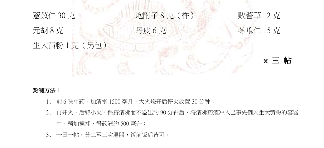在中医体系中,没有阑尾炎的说法。仲景在《金匮要略》中以“肠痈”论治。肠痈,指的是肠道内有热毒壅滞,导致局部脓肿、疼痛等症状。在经方体系中,肠痈应以薏苡附子败酱散或大黄牡丹汤为组方框架。